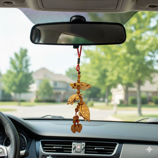 Wooden Three Turtles Keychain Rearview Mirror Window Decor for Good Luck