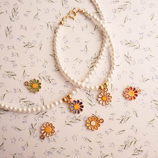 Glass Pearl Necklace with Flower Charm - DEAR MY DAISY