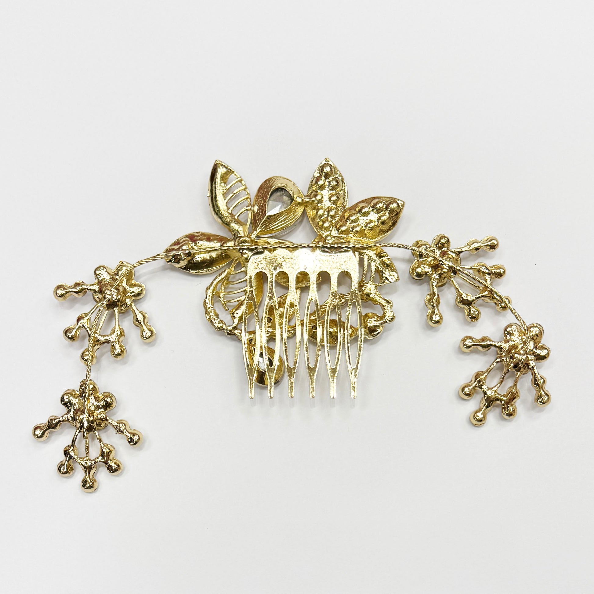 Available in gold & silver. Flexible sides allow various styles, to wrap around a bun or flow with braids on the side.