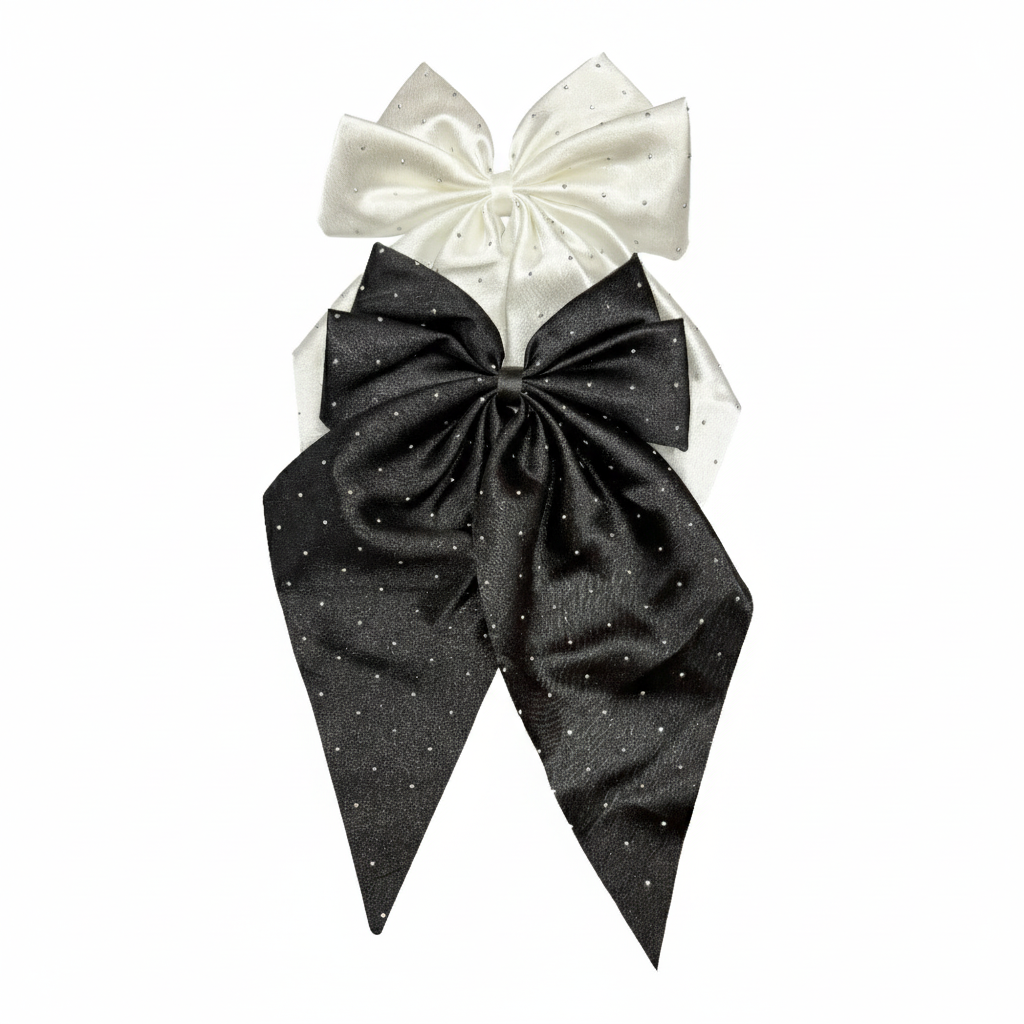 Satin Bow with Stones - Black & White